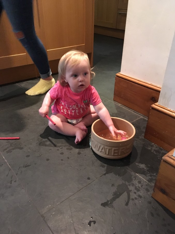 So instead, what have we done? Well Henry has made a start on his CV. Punctuation is not his friend though so I may have just casually read through his first draft adding in a few commas and capital letters. We’ve chatted to a few family members about what sort of job he should consider. This in reality was a hilarious afternoon spent with Henry’s Auntie Jen and cousin Katie with Jen recounting her most horrendous stories from working in the care industry. Many involving shit. Katie’s face throughout was just a picture and I’ve decided the care industry is definitely not for me, instead I would literally take my hat off to anyone working in that industry as it was a pretty eye-opening afternoon. We also laughed so much that Henry ended up on the floor as it was hurting his bad back too much to just sit up and laugh like a normal person. Oh, and in this afternoon Polly discovered how great dog water bowls are to play with! Face palm moment. Change of clothes moment. A hilarious video and collection of photos saved for the 18th birthday moment.