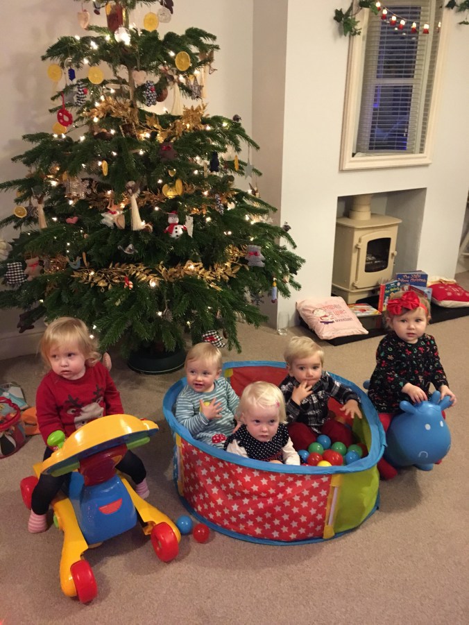 Polly and I had fun at a little festive filled playdate on Monday afternoon. We did the same last year and it was fun reminiscing what had changed over the last 12 months- turns out a lot! It was also fun attempting to take the group photo of 5 very active toddlers in front of the tree, The ball pit was a great distraction. It was also fun when we realised that next year they’ll be double the amount of little people. Yup that’s right, all 5 mums gathered are all expecting another bundle of joy in the Spring. At least we’re all doing it together! It’s actually quite reassuring doing the whole second pregnancy with other mummy friends as we all seem to have the same questions, worries and of course excitement.
