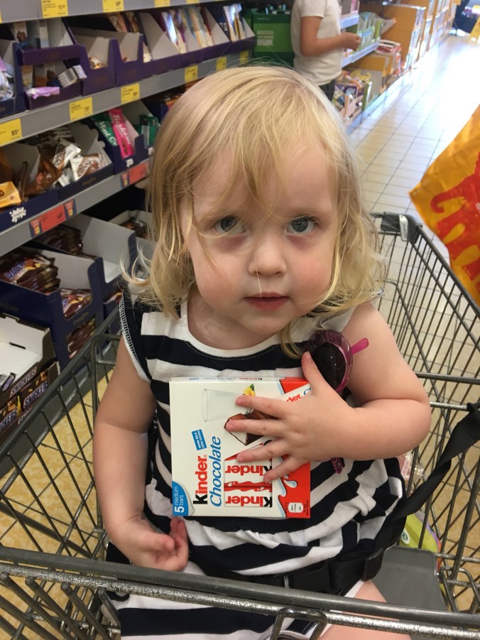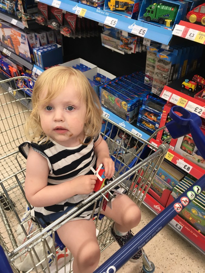Henry has been working 3 till close on a Friday which means we’ve been splitting up and spending one on one time with the children which has been quite nice as I was starting to feel guilty (I swear I feel guilty at everything these days!) about the lack of one on one time Seb was getting. So I’ve been taking him to a baby group and Henry takes Polly to the donkey sanctuary or the park or the beach. It’s quite nice to have an hour or so to just chill out with little man and Polly loves spending time with her daddy, as proven by the series of photos and videos I got from their food shop adventure this week.
