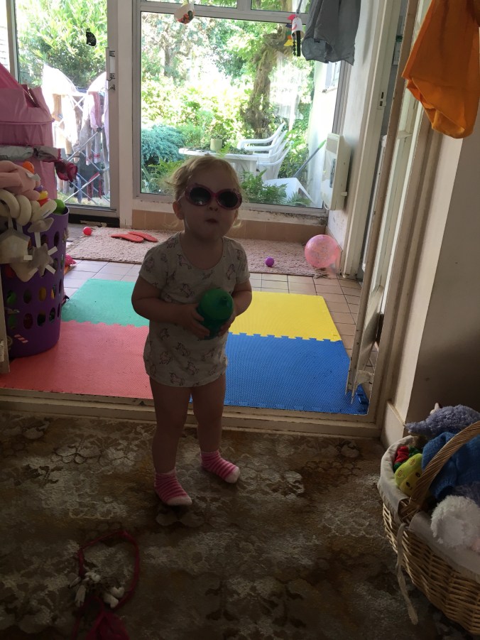 Polly had a blast Monday morning with her friends in the local gardens. On Tuesday we had our usual trip to Henry’s grandparents which included a trip to the park. Polly was straight up the big yellow slide but she herself deemed the metal one ‘too hot’ and she then got a special treat when a group of helicopters did some sort of training exercise that involved them flying so low they looked like they were touching the trees. She’s so into her vehicles at the moment I’m going to pick her up some sort of vehicle encyclopaedia so she can start learning all their names- at the moment it’s either a car, bus, aeroplane or an ‘amunat’ (ambulance to the rest of us!).