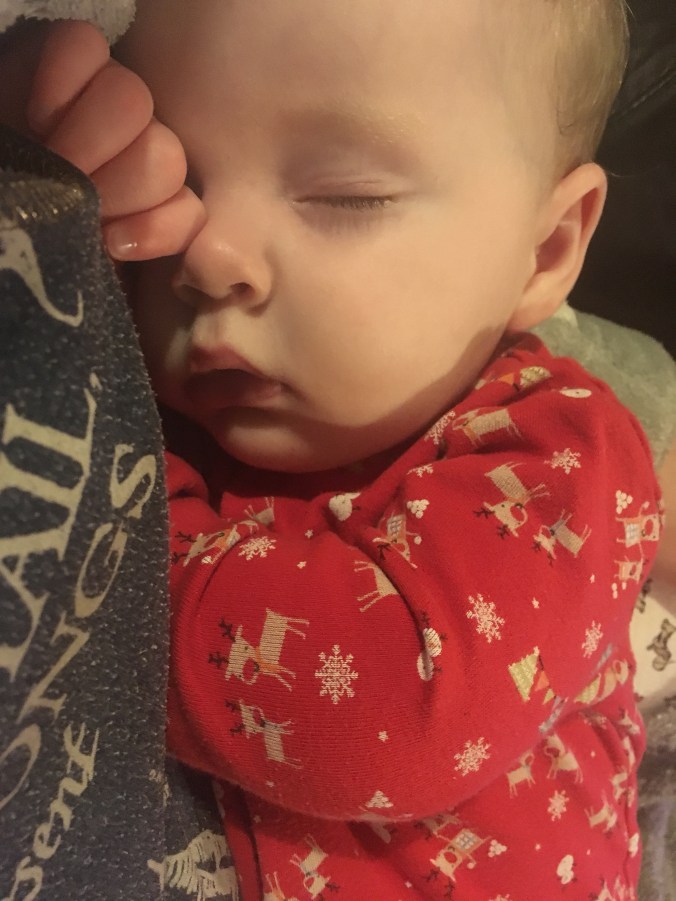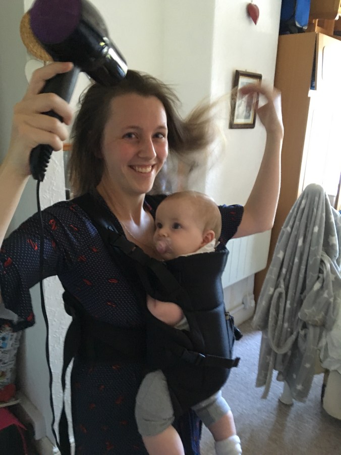 As Seb was desperately in need of a nap, but no such luck even with the hairdryer blasting away!