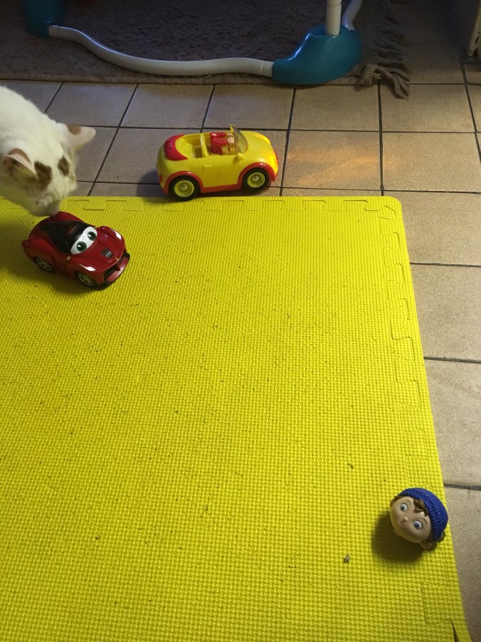 I forgot to bring the carrier with me so Seb spent a bit of time chilling on a blanket while Polly popped several balloons and rearranged the toy corner I’d set up.
