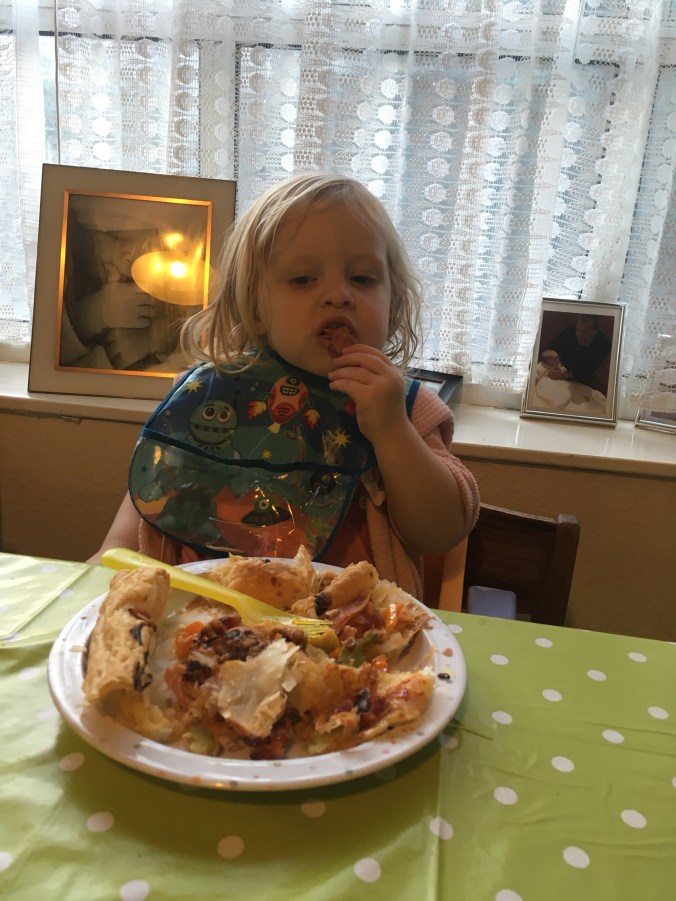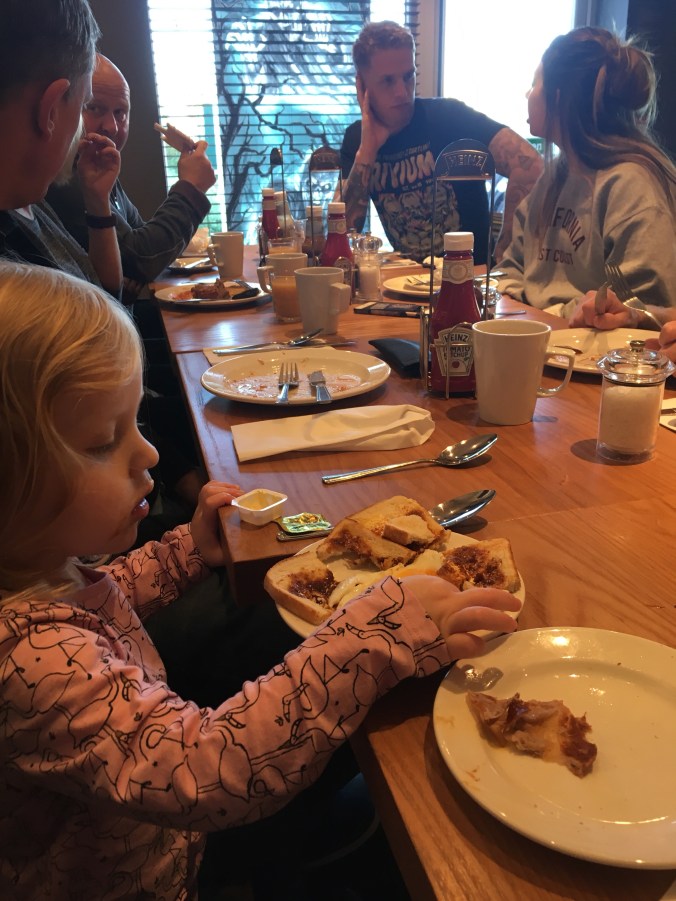 It was a long day that started with a fry up at the hotel where some of the family were staying. Polly kept us all entertained with her yoghurt eating antics before we headed to the village hall with Grandpops in tow to do some balloon blowing.