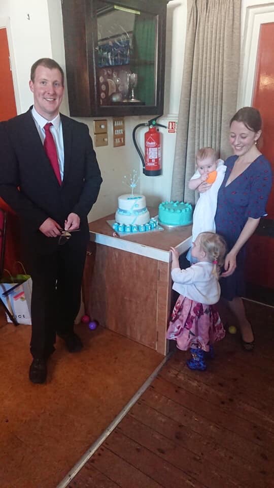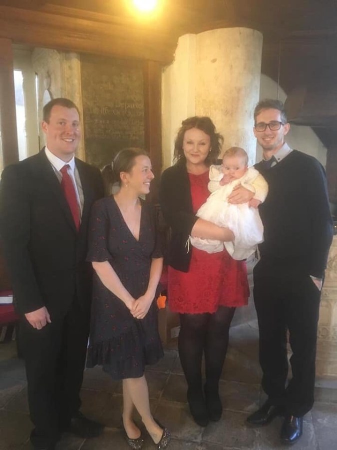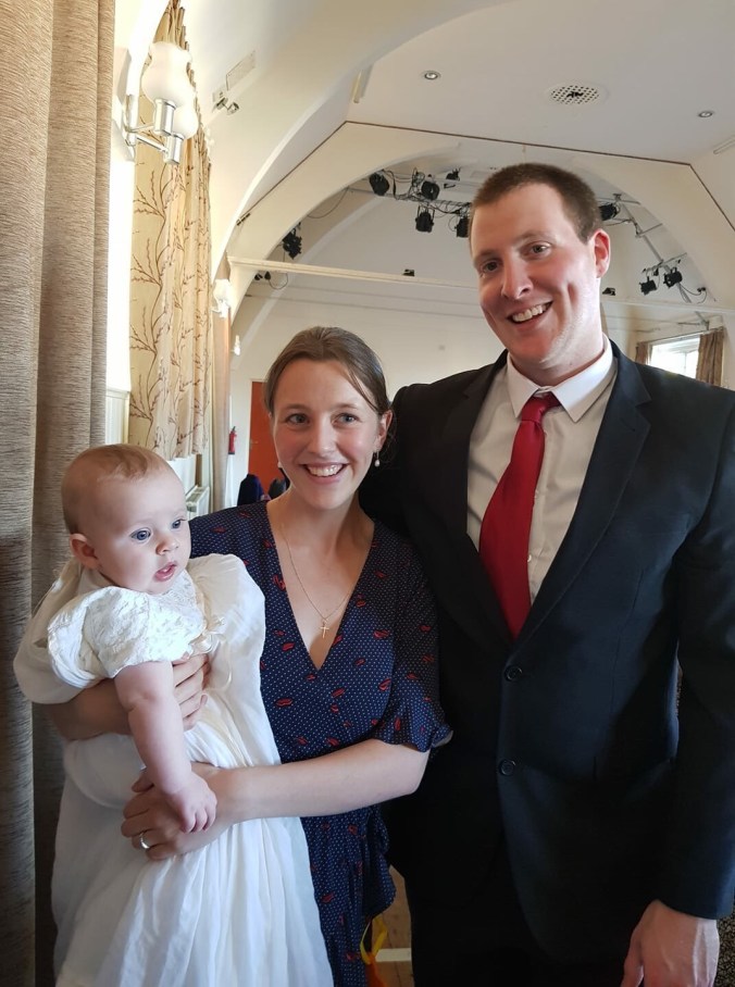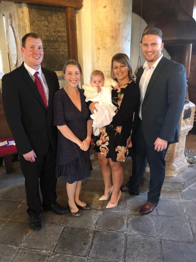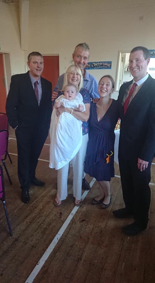 Sidbury church is where we had Polly’s nearly 2 years ago and has always had a special place in Henry’s family. As we settled into our seats Seb got a bit fussy so I offered him a feed, and he fell asleep! He stayed asleep for the whole thing. Even having the water poured on his head.