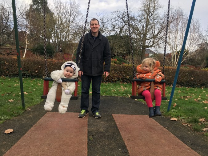 On a lighter note the year has given us a couple of amazing moments provided by our fabulous children. On Tuesday we popped into Exeter to wave off Auntie Georgia and Uncle Gyan as they head away from Exeter. This included a trip to the park where Seb had his first go on a swing… and he loved it! His little face lit up and Polly thought it was great fun when they got to swing next to each other.