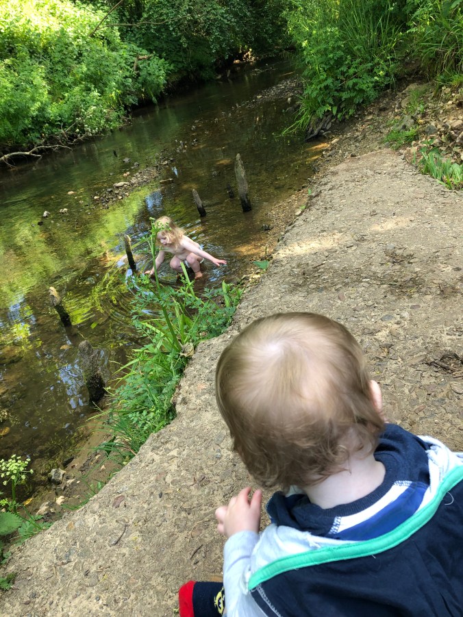 With Henry needing some peace and quiet the rest of us have been out and about as much as we can which is why a simple trip to Lidl to get nappies turned into Polly ‘swimming’ in the river a couple of days ago! There are exactly 12 minutes in between these pictures…