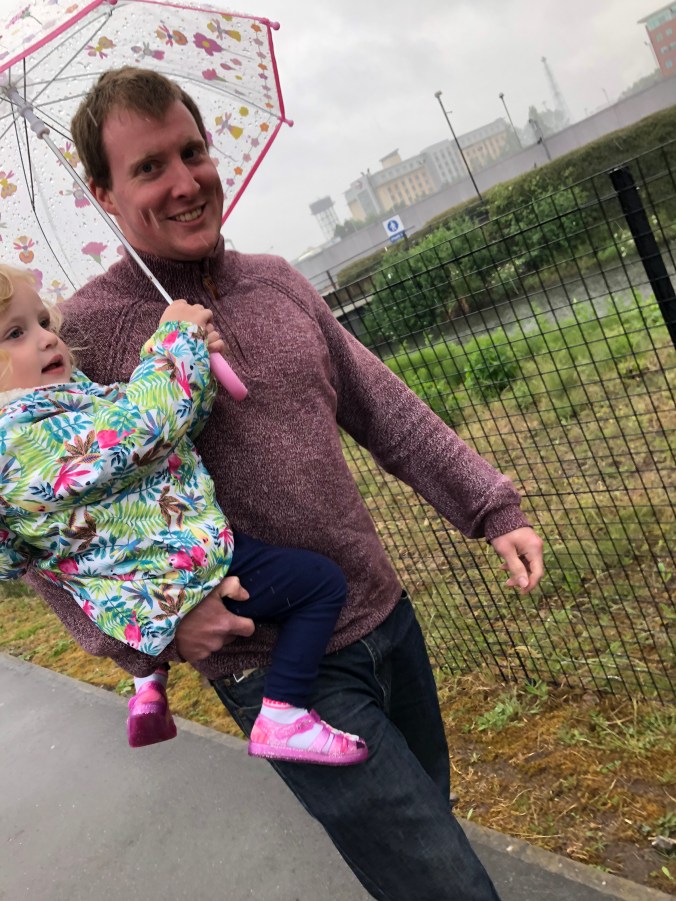 On Friday we carried on the birthday fun with a trip up to Cardiff to the science museum there where they have toddler days once a month. We arrived to pouring rain and got lost in the pouring rain, even the new umbrella wasn’t enough to help much.