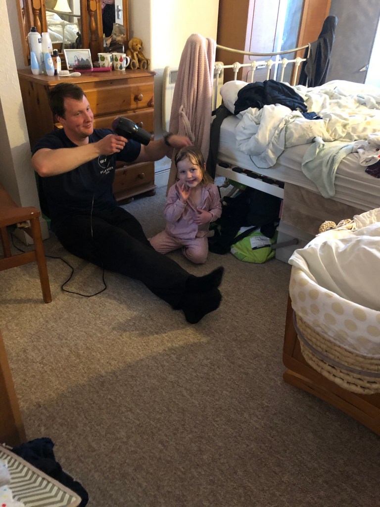 19:45- where did half an hour go?! Hair drying then time for a story before bed, bit later than planned tonight 🙈 Mr Nosey is selected tonight with Daddy being the chosen reader.