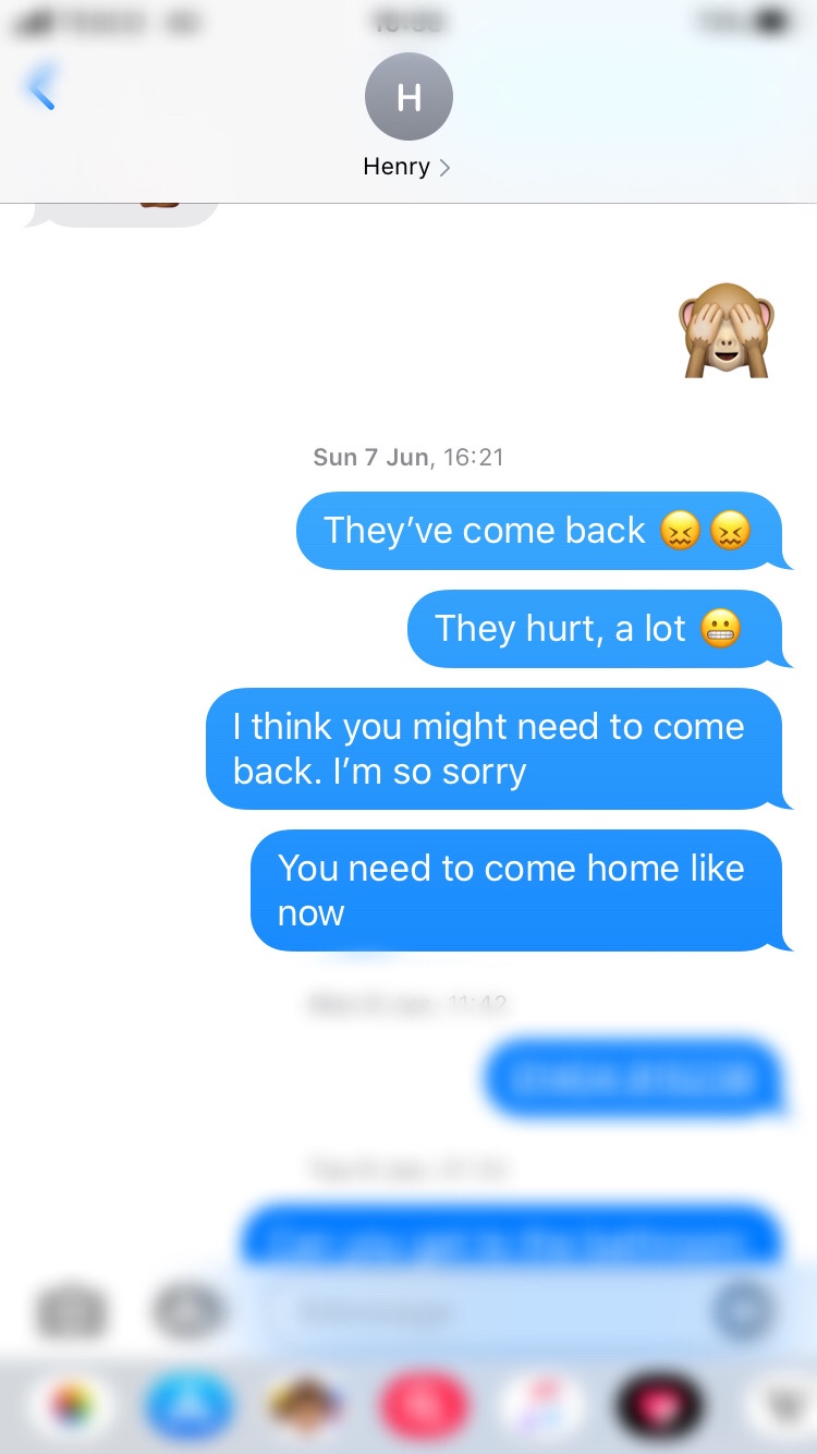 The next morning resulted in no baby, no contractions and a very grumpy very much still pregnant woman. So we had a normal Sunday. Of course the moment Henry left the house in the afternoon things changed. The contractions came back and as I described to babysitter on standby Pati- “they hurt, like they hurt”. Looking back at the messages Henry received also tells a story!