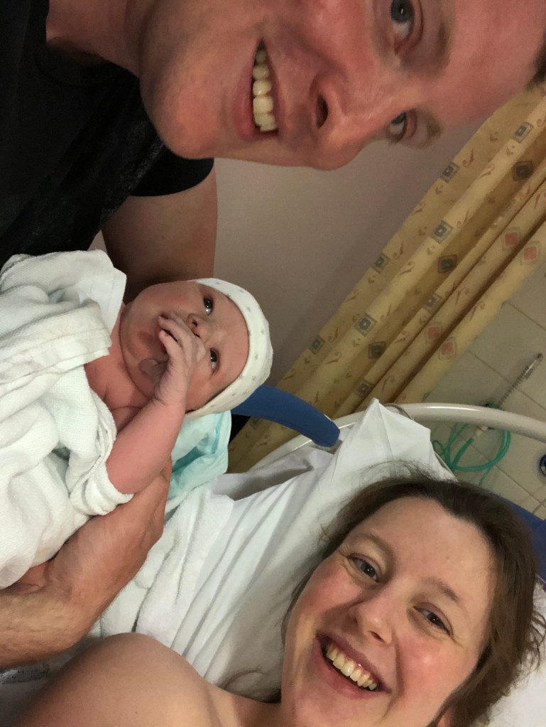 While waiting for Henry and Pati & George to arrive I employed Netflix as a babysitter for the kids and tried not to panic too much in case baby decided to make a quick appearance. Thankfully baby stayed put and with the kids in safe hands Henry and I made our way to the hospital, arriving at about 6:30. Having a baby during a pandemic is slightly different than having one during normal circumstances. For a start we found a parking space at the hospital near the door without 6 drives round the car park cursing.