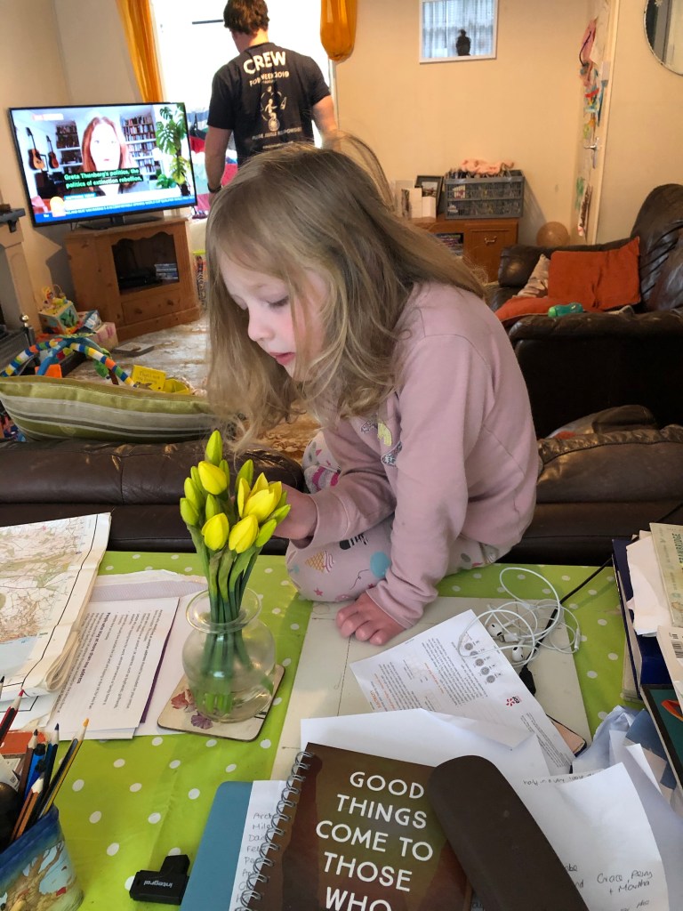 The love of flowers means that she’s got her own little garden growing in pots in the conservatory at the moment and she could be found at the weekend sitting watching some daffodils coming out like it was a TV show.