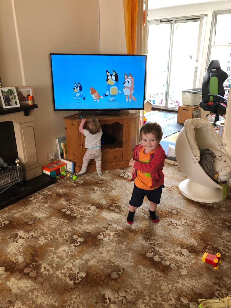 15:44- Bluey makes an appearance, so does a second snack while I try and get rid of the Picasso masterpiece off Polly’s leg curtesy of her friend.