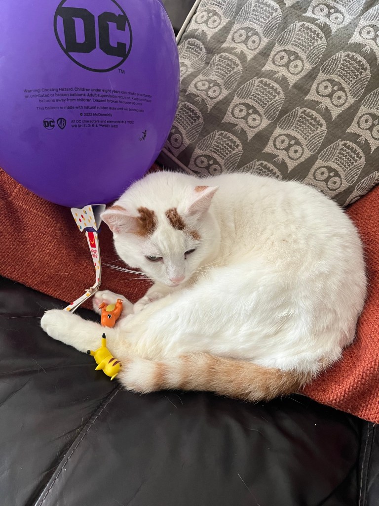 With the change in weather the cat has taken to staying in a lot more and Clara seems quite pleased about this and has taken to offering up gifts to him, this looked quite amusing the other day when she’d placed Polly’s little Pokémon figures up like some sort of sacrifice.