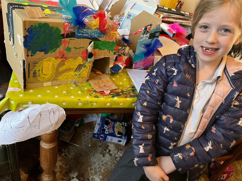 As I say there really isn’t much else to report expect that Polly did make us very proud at the weekend with a project she’s been a part of with Rainbows who joined up with the local artists. They’ve helped make a big billboard in one the car parks in the town which is made up of lots of pictures of the town to celebrate how great Sidmouth is. She’s, rightly so, very proud of her picture and it’s quite something to see her name on the list of artists. It makes me feel slightly better about the fact that she’s turned the dining room table into her art studio with several projects currently on the go- I mean she’s now officially an artist so a girl’s gotta have some space to work on her stuff.