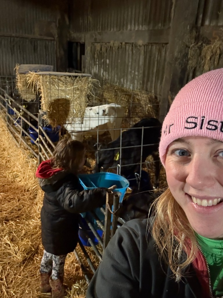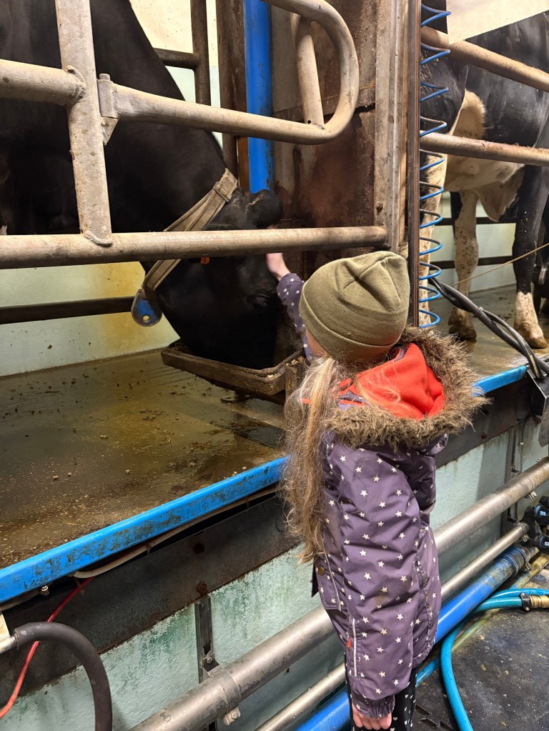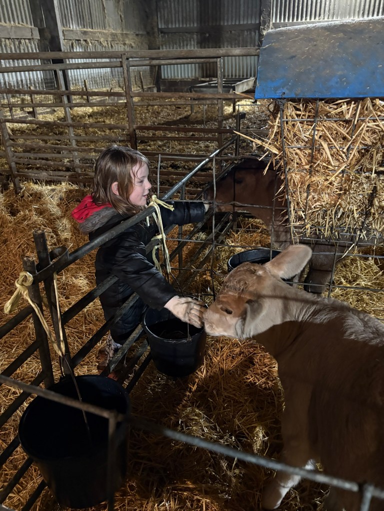 15:58- Arrive and it’s time to farm. I take Seb and Clara calf feeding whilst Henry takes Polly to start milking. Clara is very helpful feeding all the individual calves whilst Seb jumps off hay bales. Once they’re all fed we meet the other 2 in the parlour to help finishing the milking off. The kids play cows in the parlour once the actual cows are all out whilst Henry and I do all the washing, although Polly did her fair share of scraping the shit through first to help.
